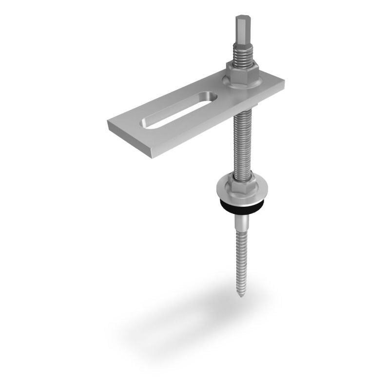 Zum Befestigen der K2 Systembauteile auf Dächern mit Wellfaserzementeindeckung. Zur Höhenregulierung der Anlage sind die K2 Stockschrauben mit einem extra langen metrischen Gewinde ausgestattet. Der Kopf der Schraube ist mit einem Sechskant versehen, sie kann daher zeitsparend mit einem Elektroschrauber montiert werden.